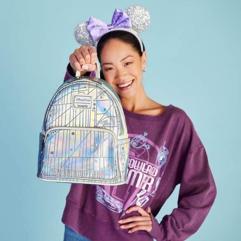 We love it when Loungefly celebrates Disney Parks on their bags and accessories, and we especially love their latest Disneyland themed design. The new bag is inspired by the Tomorrowland wall right down to its spectrum of colors that change as light hits it.