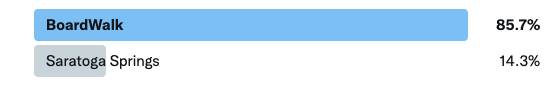 Before we move on to today’s matchup, let’s take a look at our last result. After one of our closest matchups ever, we had another blowout. BoardWalk Inn and Villas got more than 85% of the vote, sinking Saratoga Springs and moving on to the Elite 8.