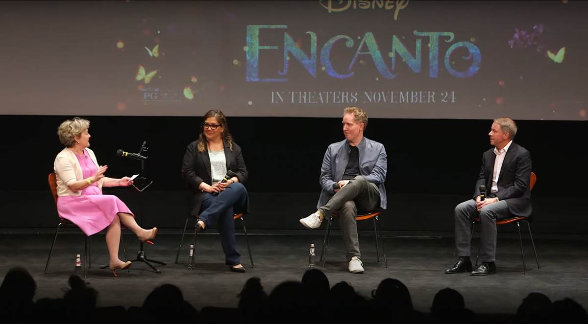Up first was Encanto, featuring co-director Jared Bush, producer Yvett Merino and Clark Spencer, the president of Walt Disney Animation Studios. Bush spoke of his desire to create a musical following his work directing Zootopia, along with songwriter Lin-Manuel Miranda’s desire to “do the definitive Latin American musical.” This led them through a vast creative process, which included getting the story beats right and the number of characters. Originally, the filmmakers thought the centralized setting of the Encanto would make for a simpler creative process, but they were quickly proven wrong.