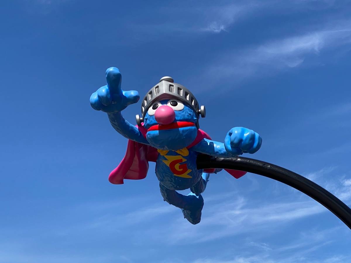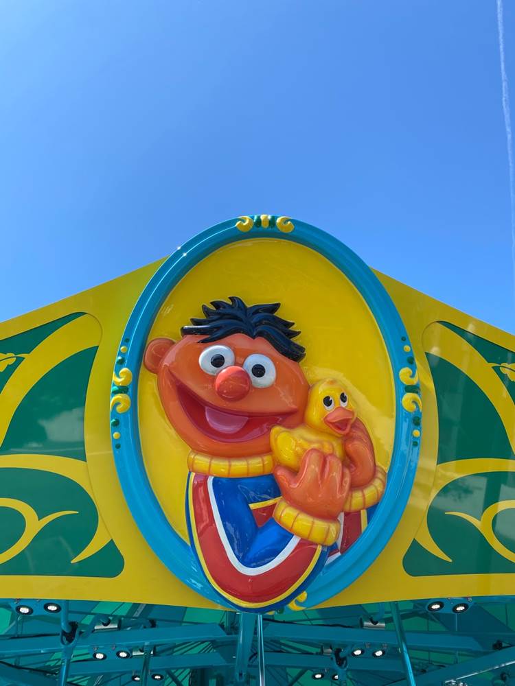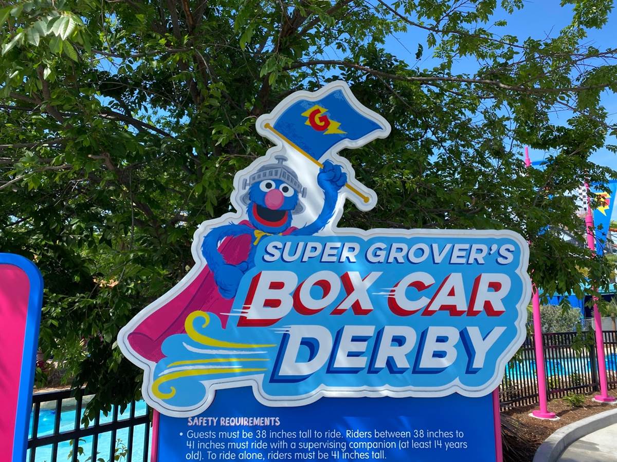 And then right next to Cookie’s Monster Mixer is the parks’ roller coaster, Super Grover’s Box Car Derby.