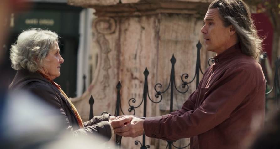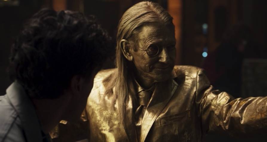 Steven than talks to a living statue in a park and actually explains his whole sleeping situation. He says his body simply gets up and wanders about at night and he doesn’t know about it until he wakes up “wherever.” The man, who of course doesn’t respond, is actually a character from the comics. Thanks to the credits, we know this man is Crawley, an old homeless man who is both a friend and an informant to Moon Knight in the comics.