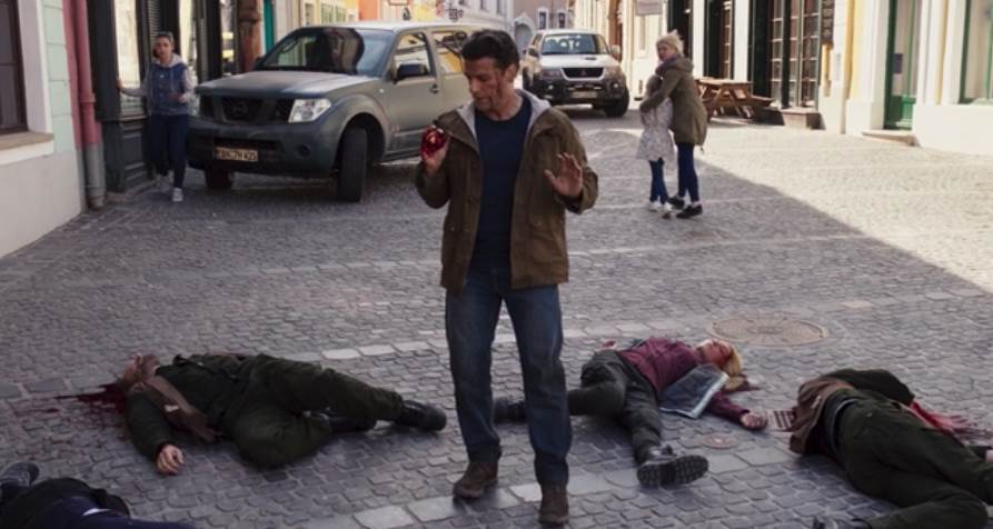 The soldiers surround the van and Steven Blacks out again. This time he wakes up to find that he is now driving backwards and holding a gun as one more car full of soldiers continues to chase him. The voice tells him to “leave us be” and even calls him a parasite, which is another strange connection to that Venom dynamic. He stops the van and the soldiers get out of their car with their guns drawn before they are taken out by some falling logs from earlier in the chase.