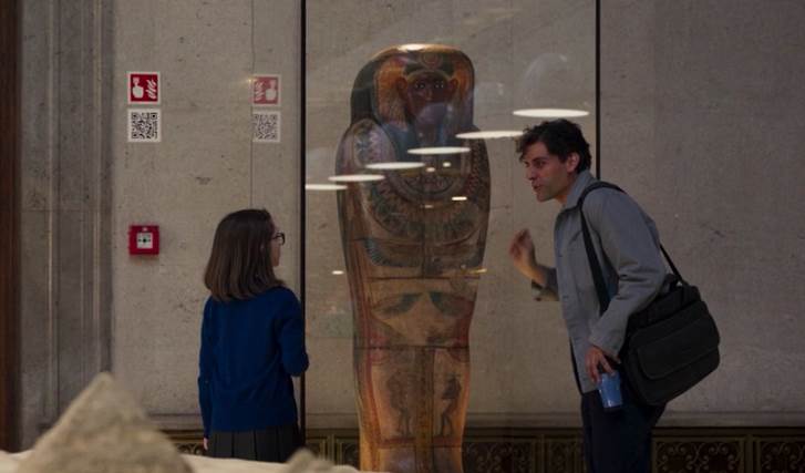 - During the scene in which Steven provides tour guide-like services to the young girl in the museum, you can spot a QR code on the wall in front of them. You can see it in the top left of the image above.