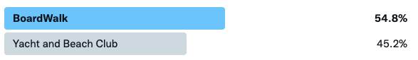 Before we move on to today’s matchup, let’s take a look at our last result. In the battle of the BoardWalk, the BoardWalk won. BoardWalk Inn and Villas defeated Yacht and Beach Club in a very close matchup, taking about 55% of the vote and taking the last spot in the Final 4.