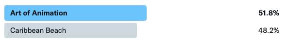 The two vs. three first round matchup in the Hollywood Studios region proved to be an exciting one. In the end, Art of Animation squeaked out a victory by gathering just over half of the vote.