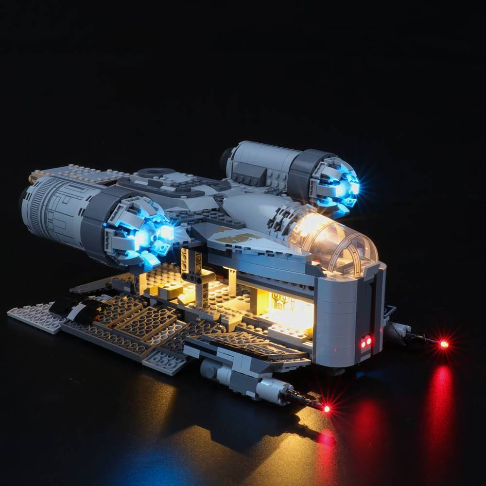 And now LEGO Star Wars fans who want an attractive way to display their completed Razor Crest ship using colorful lights can pick up the set’s unofficial LED Lighting Kit from BriksMax.