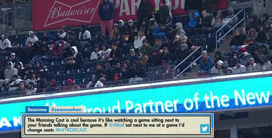 After the popularity of ESPN’s Manning Cast during the most recent NFL season, the network debuted a baseball equivalent during the first Sunday Night Baseball of the season tonight. The Kay-Rod Cast sees MLB legend Alex Rodriguez and Yankees play-by-play commentary Michael Kay provide some additional insight, guest interviews and more during the game.