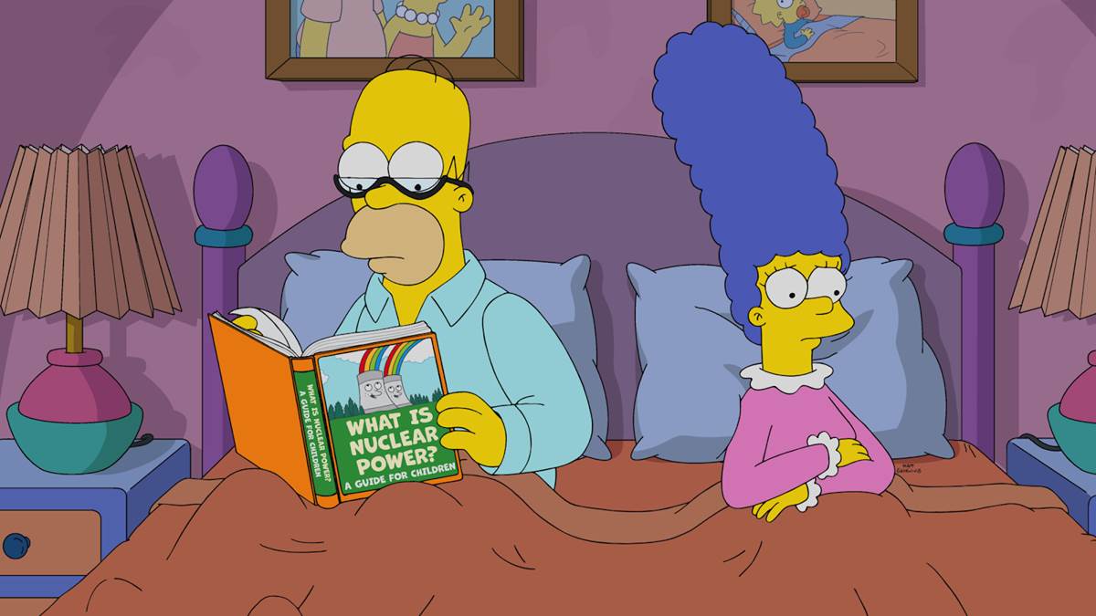 Couch gag: Lisa plays jazz on her saxophone in the living room, while the other family members are musical notes on a staff. A voice repeatedly sings “sell peanuts, sell peanuts” while Marge, Homer, Maggie, and Bart dodge the other notes as they scroll by. This ends with Homer bellowing out a bass-note “D’oh.”