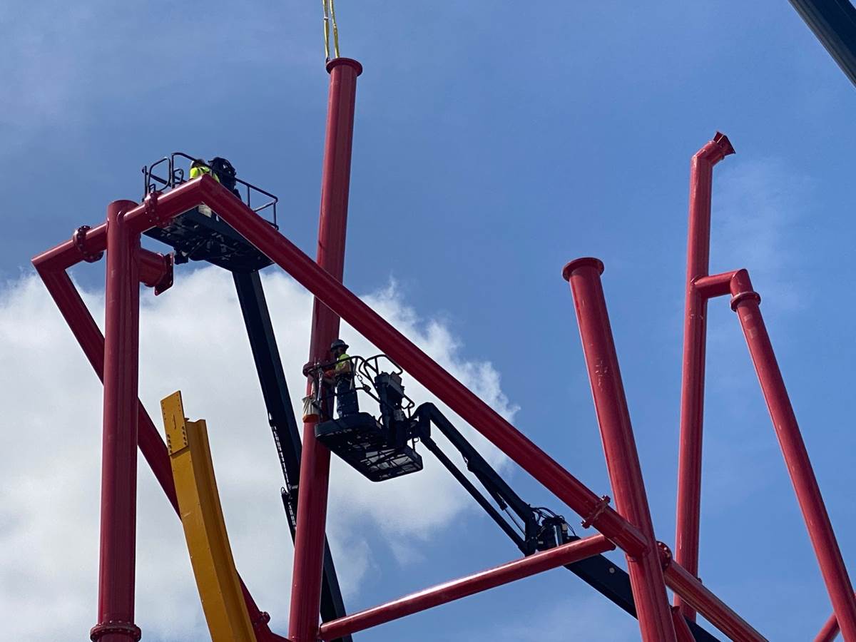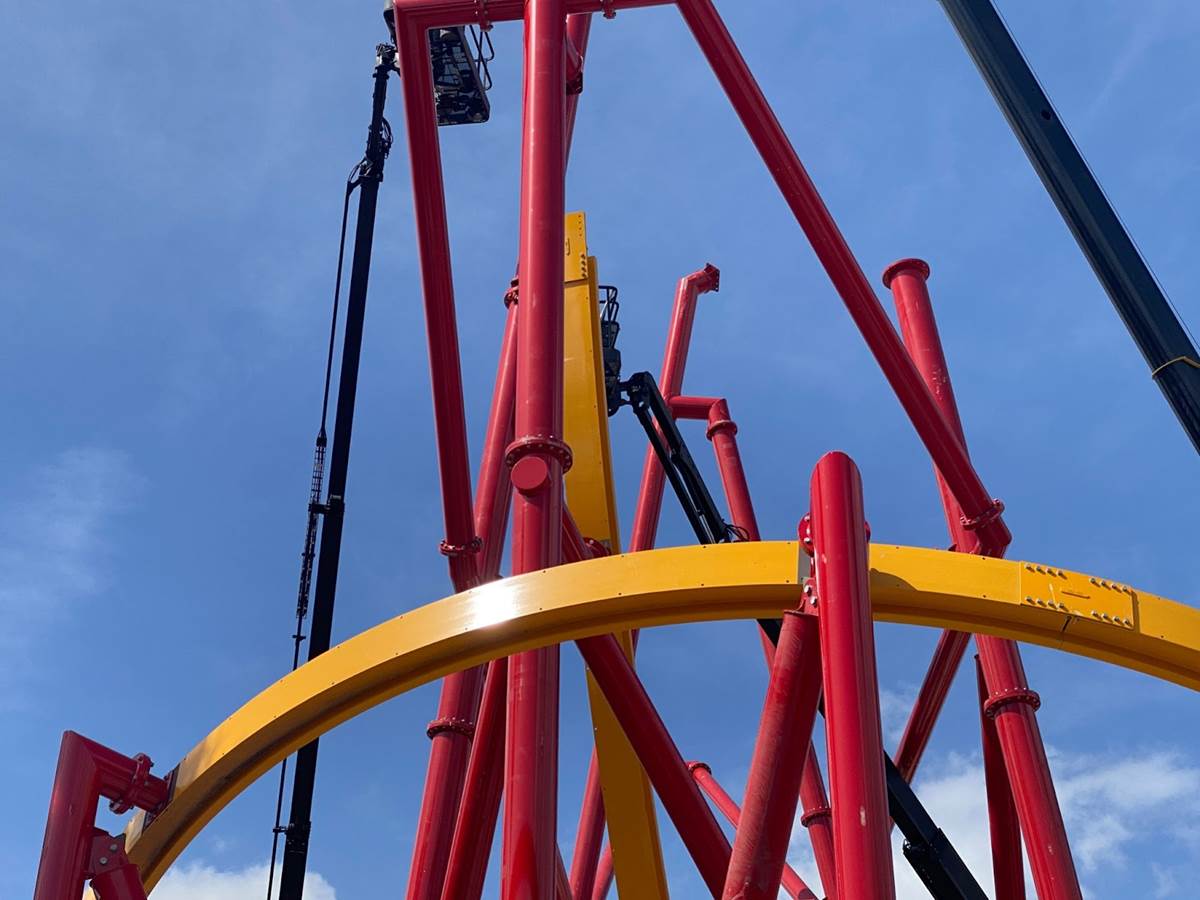 Now let’s check in on the construction of Wonder Woman: Flight of Courage, a Rocky Mountain Construction single rail coaster set to open this summer!
