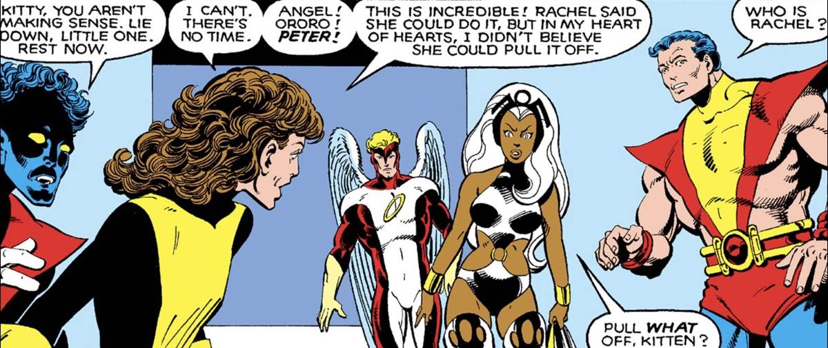 This particular panel is essentially a summary of the story and shows off how unique it really is. It’s a classic time travel story but the time travel more or less takes place within the body of this one character. It’s also by far the most compelling story for Kate Pryde to this point and it gives her a chance to shine, which she does. Seeing here reunite with the rest of the X-Men here is such a great moment in this story.
