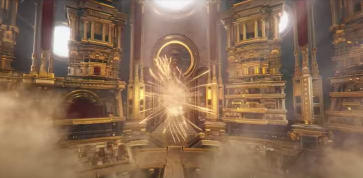 We then see some kind of gigantic, extravagant chamber that looks to be entirely made out of marble and gold. After some magical theatrics, a lightning bolt is caught out of midair by a mysterious hand.