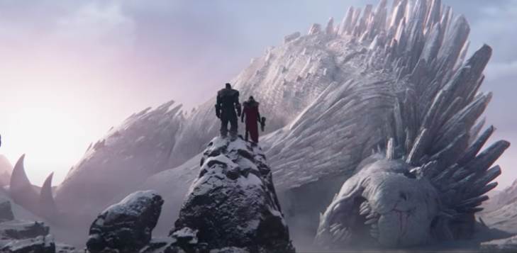 Again, the villain in this film is set to be Gorr the God Butcher. He was not given that name by mistake, he earned it. So if you put two and two together, it probably doesn’t mean great things for Zeus. We’ve already seen one apparent god skeleton in this teaser and the next shot shows the corpse of another. The great thing about this shot is that it is taken right out of the comics. In “Thor: God of Thunder #3,” Thor find the corpse of Falligar the Behemoth after he is slain by Gorr. Here, Thor and Korg seem to stumble upon the body of the fallen god. Thor certainly appears troubled by this sight.