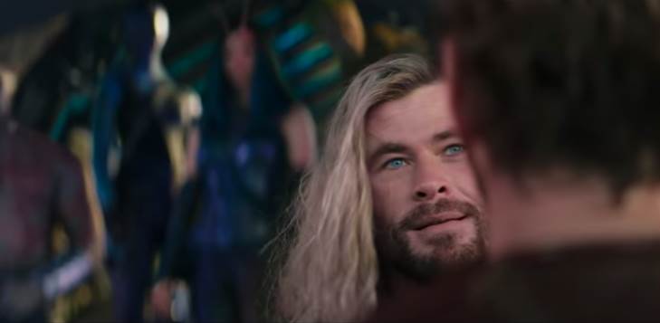 We then see that Thor is still working with the Guardians of the Galaxy. They appear to be teaming up on some sort of planet, surrounded by some kind of blue aliens. While the most familiar blue species in the MCU would be the Kree, these beings don’t appear to be the Captain Marvel villains as they seem to be much more peaceful. Meanwhile, Star-Lord seems to be getting tired of Thor’s antics.