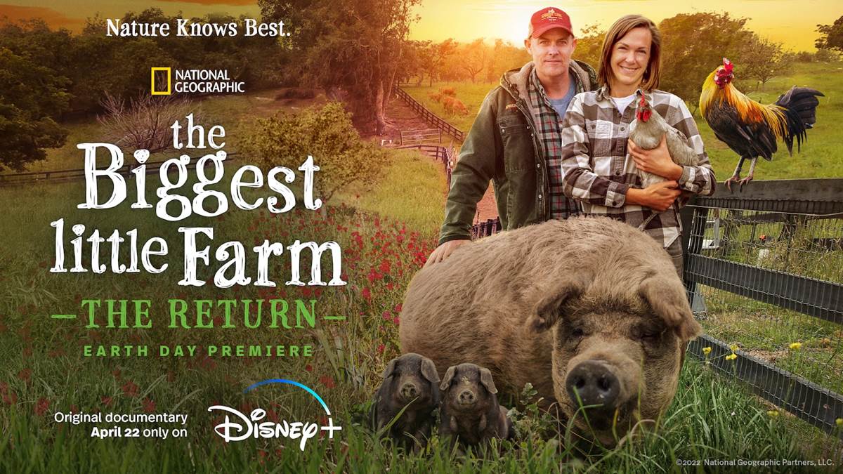 The Disney+ Earth Day special The Biggest Little Farm: The Return, from National Geographic, is based on the 2018 award-winning feature documentary film that tells the story of John and Molly Chester, who abandon their urban life in Los Angeles to live on a barren farm to grow delicious food in harmony with nature in Ventura County. The new special follows the farmers’ 10-year tireless journey as they transform the land into a magical working farm and document the whole process in this heartwarming special that is akin to a real-life Charlotte’s Web. Apricot Lane Farms is a beautiful, complex world that reflects our planet’s biodiversity, and this special introduces audiences to animals that will quickly burrow into their hearts, like Georgie the gopher-eating egret, Emma the pig who welcomes her newest litter, and an adorable lamb named Moe who believes he’s a dog. This Earth Day, see how the farmers utilize the interconnectedness of nature to help build soil health, maximize biodiversity, and regeneratively grow the most nutrient-dense food possible.