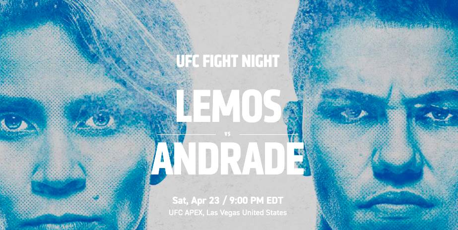 UFC Fight Night: Lemos vs. Andrade will be held Saturday, April 23 at 9 PM ET. Fight fans can watch live on ESPN+.