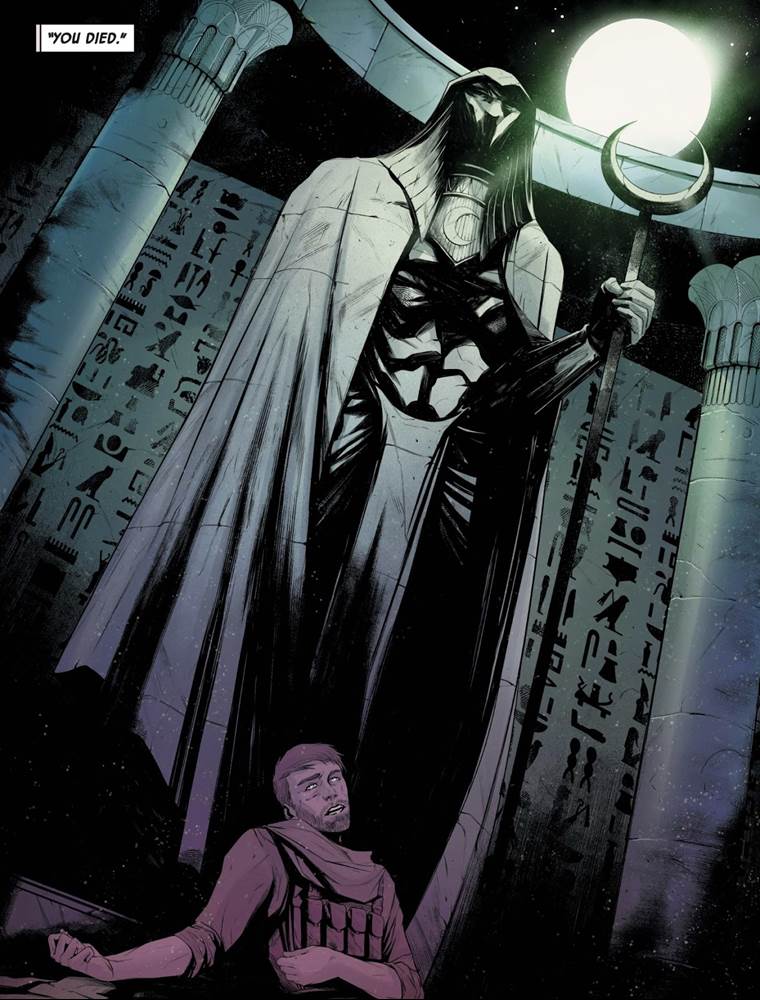 Steven points out that the scales are nearly balanced as they see Marc become Moon Knight for the first time. The two rush back out to the boat to see that souls are flooding the underworld “before their time,” letting them know that Harrow has unleashed Ammit. Taweret agrees to help them get back to stop Harrow but they still need to balance the scales.