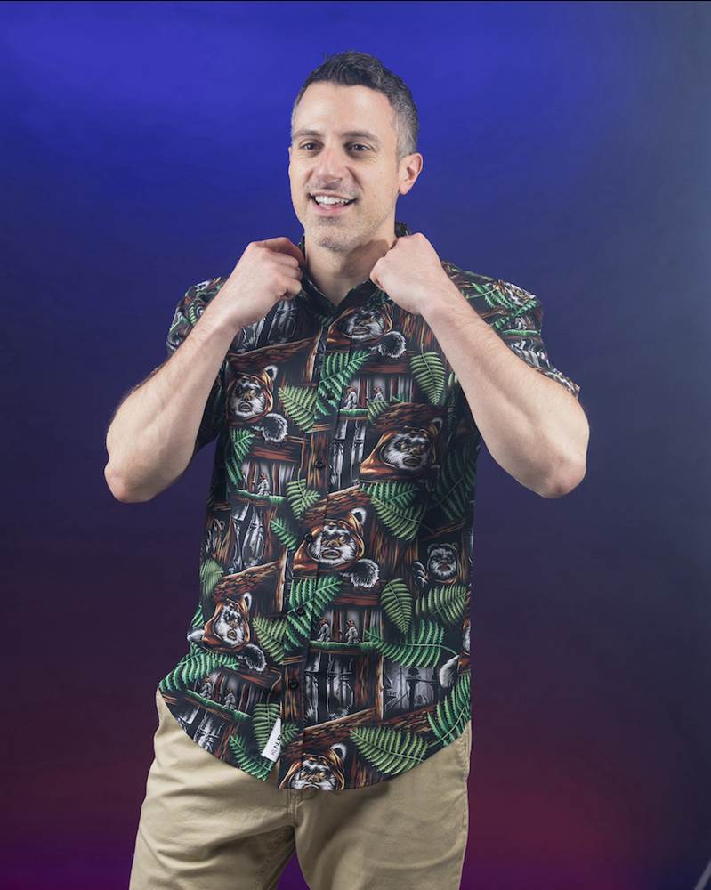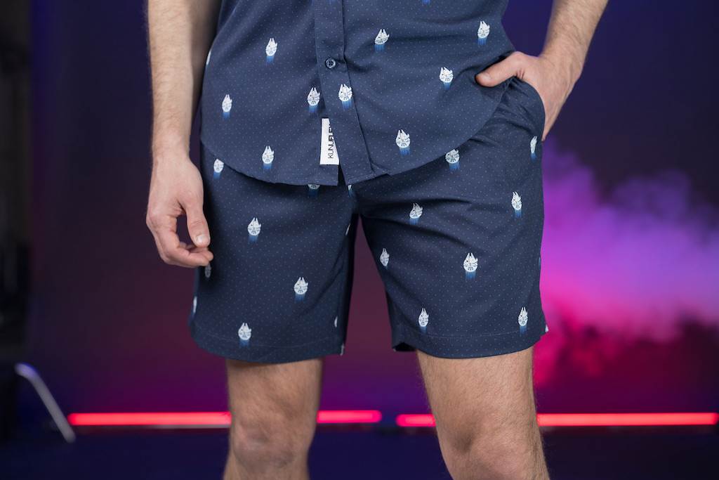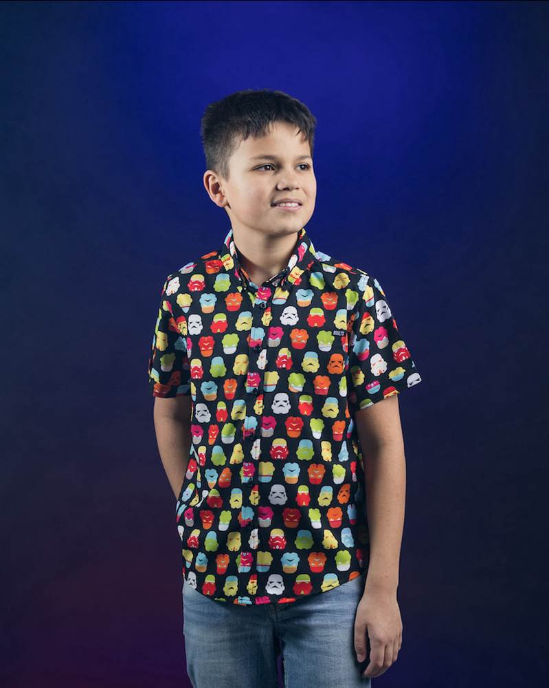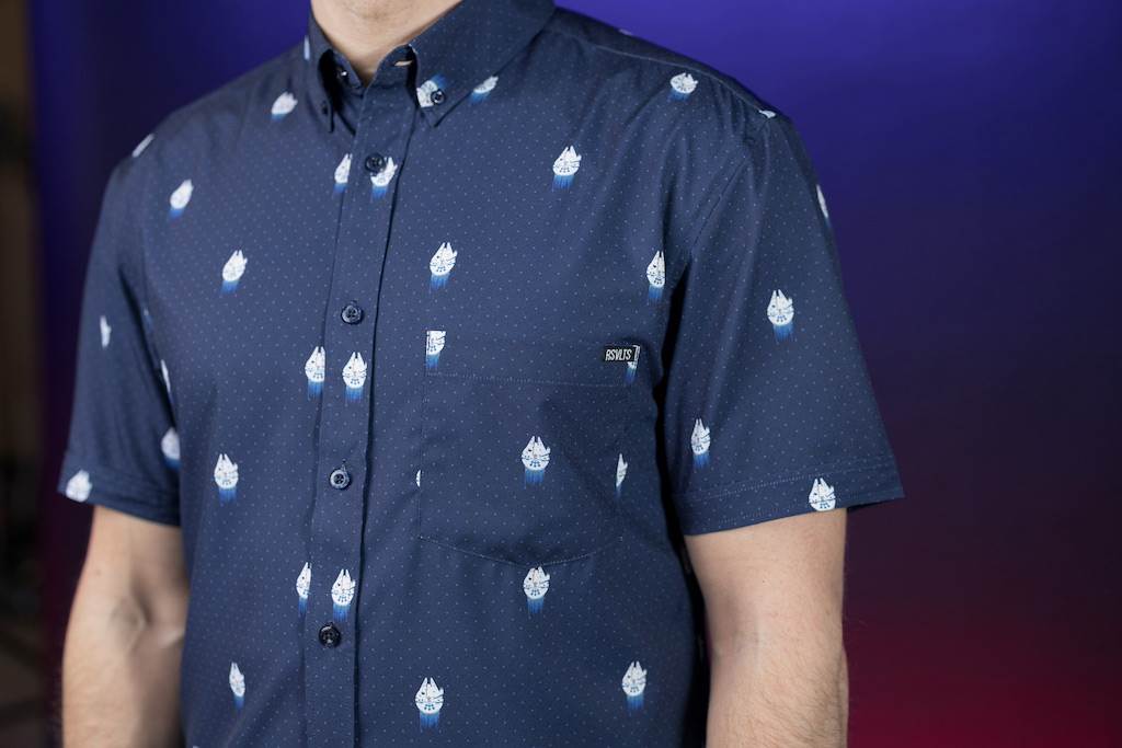 We all know the story about how the Millennium Falcon made the Kessel run in less than 12 parsecs, now it’s time to honor the ship, her skilled captain and co-pilot with a classy pattern that evokes the strange energy of cosmos. The print is available in traditional and youth button downs, and hybrid swim/leisure shorts.