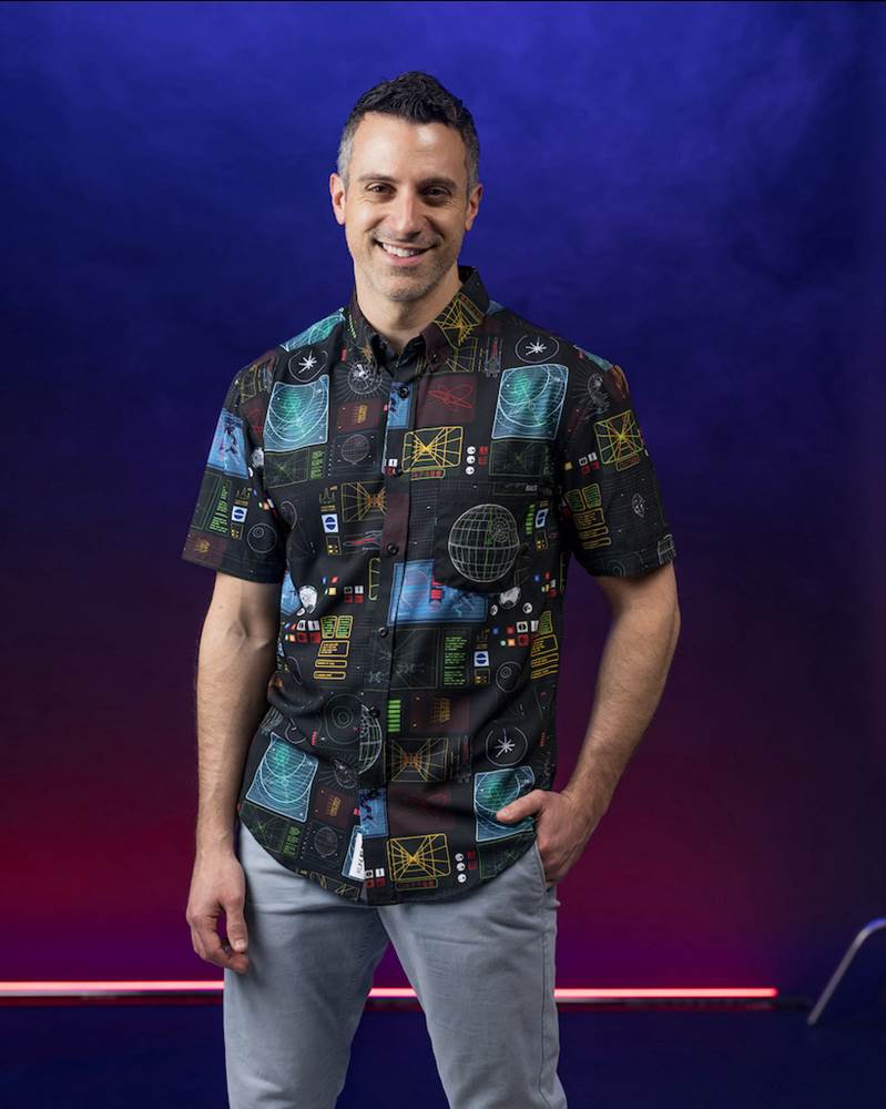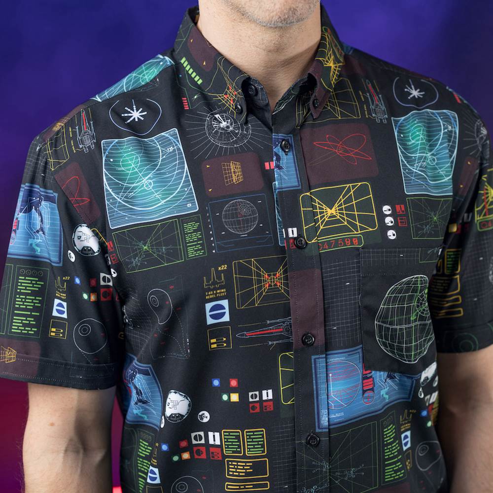 We wrap things up with this incredible design of the scopes, computers and navigational imagery that proved to be super important to the Rebellion. Luke might have been able to just use the Force, but for everyone else, some digital guidance made a world of difference. Available in traditional button downs, hybrid swim and koozies