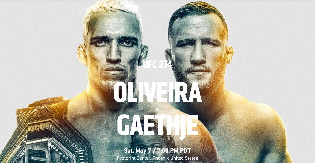 UFC 274 will be held Saturday night, May 7 at 10 PM ET. Fight fans can order the pay per view through ESPN+ and receive a special offer: $89.98 for UFC 274 and an ESPN+ annual plan. ESPN+ subscribers can order the pay per view for $69.99.