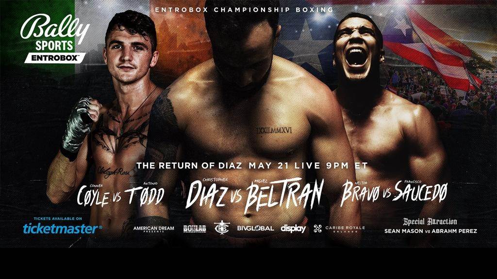 - The Diaz-Beltran, Bravo-Saucedo and Coyle-Todd bouts will air on the Bally Sports Network and Bally Sports app live at 9 PM ET.