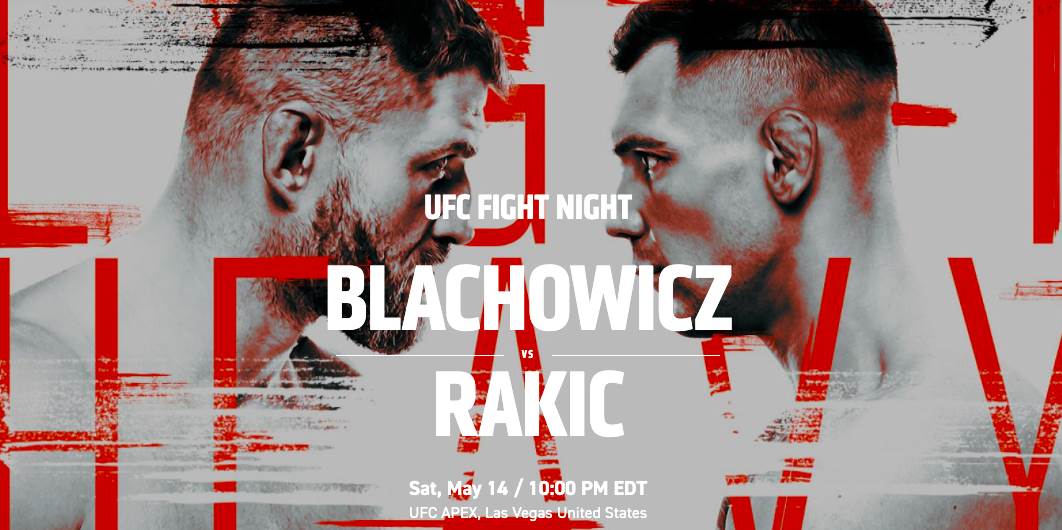 UFC Fight Night: Blachowicz vs. Rakic will be held Saturday, May 14 at 10 PM ET. Fight fans can watch live on ESPN+.