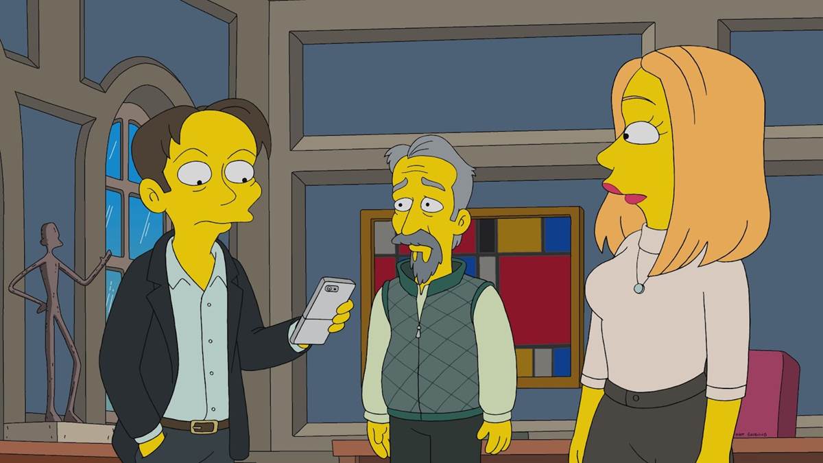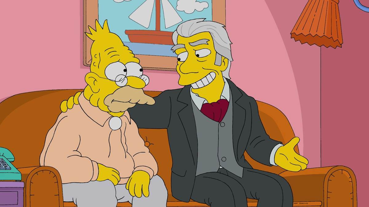 Bart complains to Homer about how Krusty’s show has changed– it’s now “Herschel the Comical Man Show" with “Nothing Mel" as the sidekick. Watching in the mansion, Abe and Gus laugh about how they ruined Krusty, while Gus’s three kids scheme against him. Lisa screens a Chloe Zhao movie about saving the Earth, and Sheila tries to persuade Lisa to help her gain control of the company. Abe thanks Lisa for joining him on this journey, and at a board meeting later on Sheila says her father is a dinosaur and proposes a vote of no confidence in her father. Abe becomes the tie-breaking vote, and goes against Lisa’s advice to vote “no." Gus fires all of his children and reveals that he only brought Abe in to “smoke out his backstabbing children." “I win because you voted no!" As a last resort, Grampa goes into one of his long rambling stories, and claims to be mentally incompetent.
