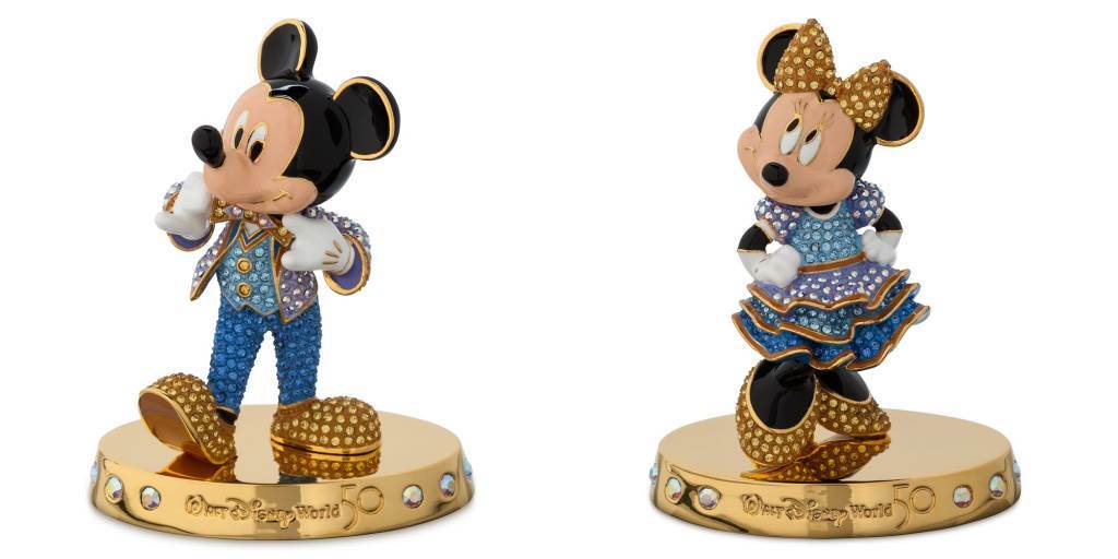 These stunning figurines showcase the iconic mouse duo in their celebratory WDW 50th iridescent outfits. Of course this time their iridescence comes from dozens of miniature crystals perfectly placed all over the figurines!