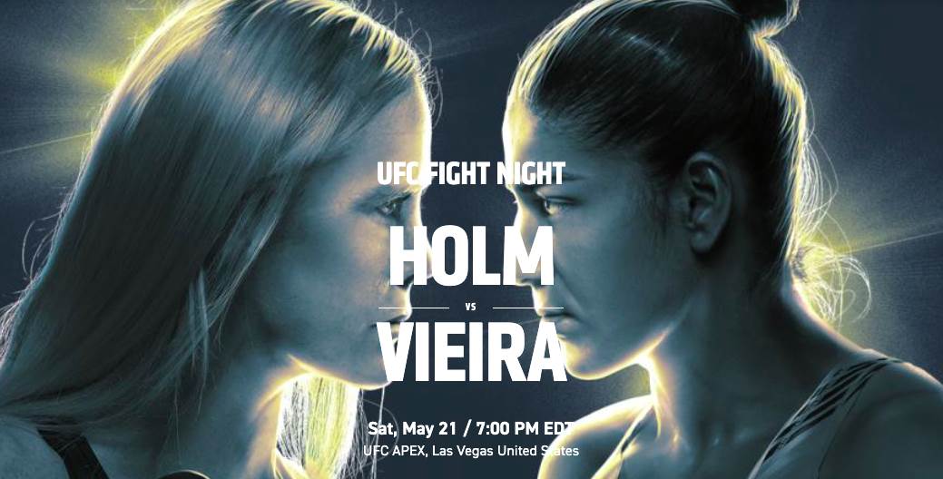 UFC Fight Night: Holm vs. Vieira will be held Saturday, May 21 at 7 PM ET. Fight fans can watch live on ESPN+.