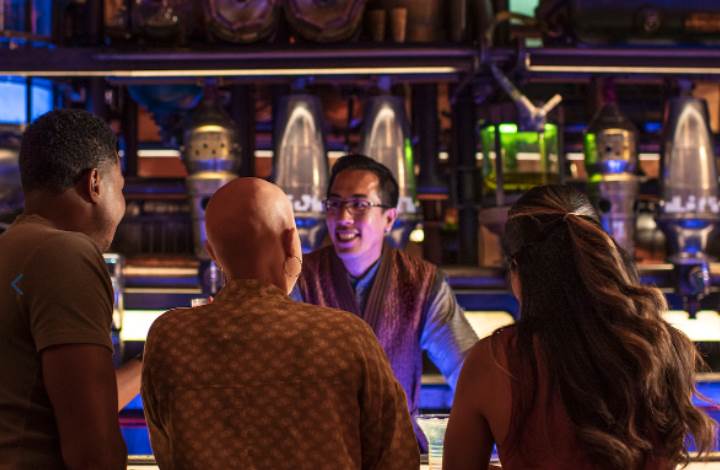 Gold leader standing by. There are a lot of delicious cocktails and brews in Star Wars: Galaxy’s Edge, but the Gold Squadron Lager is my drink of choice. A light lger from Blue Point Brewing, Gold Squadron is unique in its taste, with notes of lavender and plum. That is not a combination you see very often in anything, let alone a beer. And believe it or not, it really really works. It’s a light-yet-satisfying beer that will complete your Star Wars experience, whether you’re exploring Black Spire Outpost with Rey and Chewie or sitting with the scum and villainy at Oga’s Cantina.