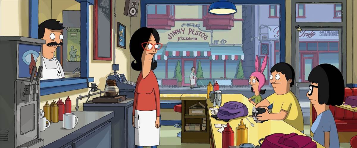 Cut to the “present," where Bob (voiced, as always, by H. Jon Benjamin) and Linda (John Roberts) Belcher are late with a loan payment and the local bank is threatening to repossess their beloved kitchen equipment. They have a week to make up the deficit, and thankfully that week is during Wonder Wharf’s bustling 80th anniversary celebration, but when the ground quite literally falls out from underneath them, the family has to come up with a plan to save their restaurant– and quick. The three Belcher children– teenage Tina (Dan Mintz), eleven-year-old Gene (Eugene Mirman), and nine-year-old Louise (Kristen Schaal) each have their own story arcs that are set up by series-callback fantasy sequences and play out through the rest of the film, but they also become determined to help their parents preserve the business that keeps them afloat financially.