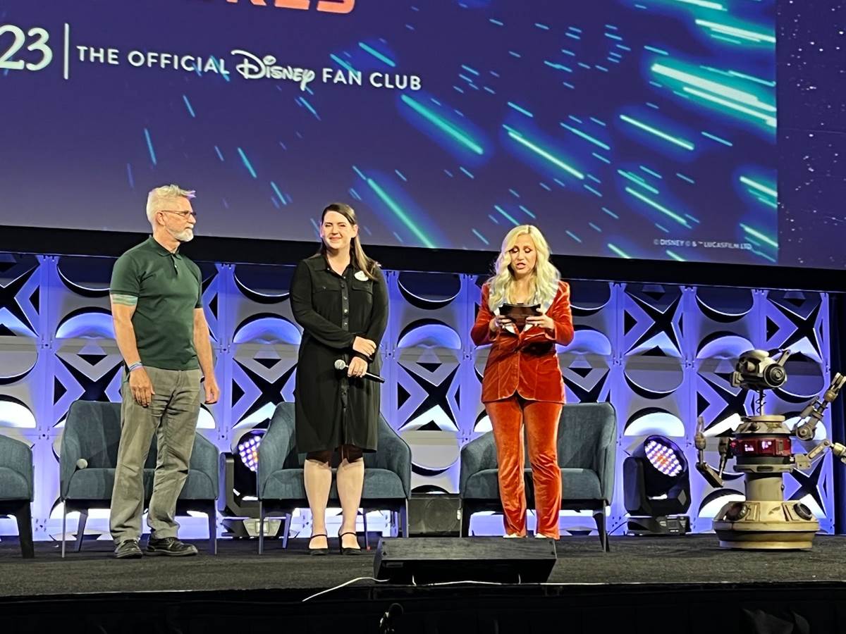 The original Star Tours ran until 2010 when Disney Parks switched the projections to digital. Now in 3D, the attraction could offer an ever-changing variety of destinations and surprises. Taking the stage to talk about Star Tours: The Adventure Continues were Meghan Short from Walt Disney Imagineering and Bill George from Industrial Light and Magic.