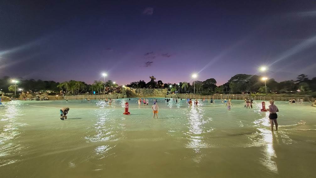 If you’re wondering whether you can truly enjoy a water park at night, well, the air and water temps were both around 80.