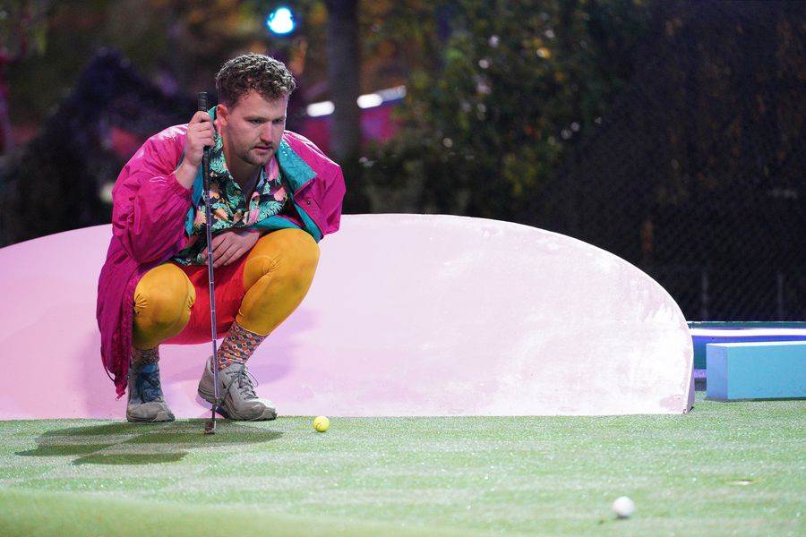 Back to the course, where the next round is kicking off with Stuntman Paddy going head to head with mini-golf course owner Dylan at Trap-Tee-Ze.