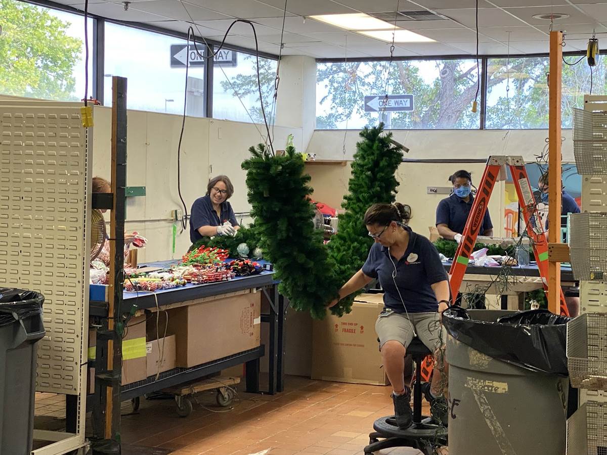 We were fortunate enough to see this in play, as a team of Cast Members readied some garland for installation.