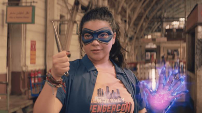 Zainab and Owais show Kamala around the city before separating to meet some friends. Kamala tells them she’s going to check out the train station and goes off on her own. While exploring an area of the station that is blocked off, Kamala puts on the mask Bruno sent her. While she admires a mural of Ant-Man, a dagger flies into the wall in front of her. A man then drops in, with a red scarf covering his face, and reveals that he has been following Kamala. The look is instantly familiar to comic fans as this is the Red Dagger, a superhero who operates in Pakistan and also happens to be Kamala’s cousin. Though, the latter appears to have been changed for the series.