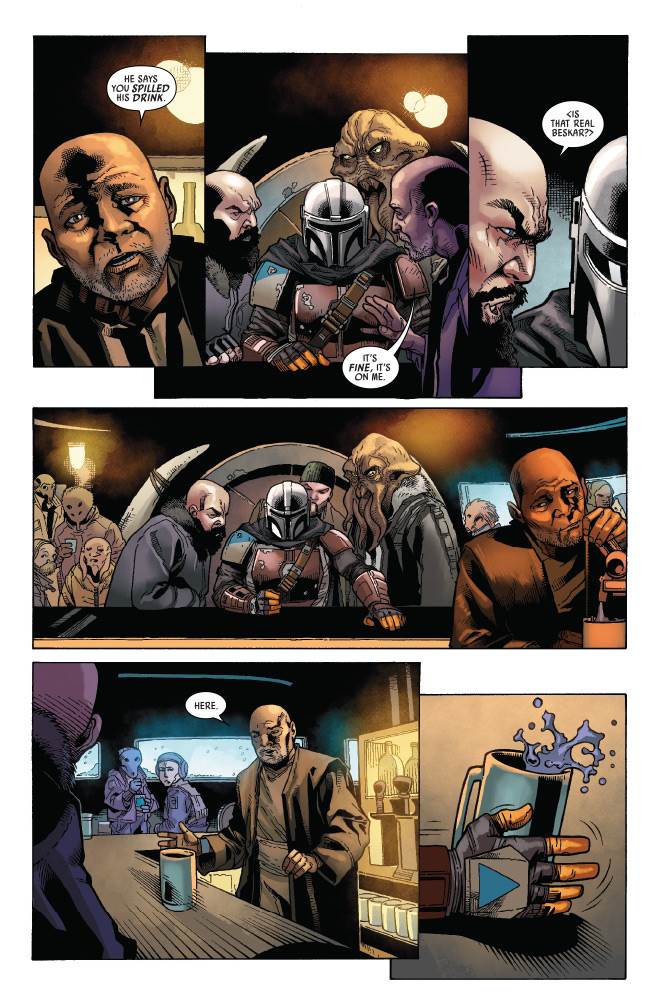 But Star Wars: The Mandalorian #1, out today from Marvel Comics, feels worth talking (and writing) about not just because of the success of the series on which it is based, but also because its creators have done a notably admirable job of recreating the spirit and tone of that series.