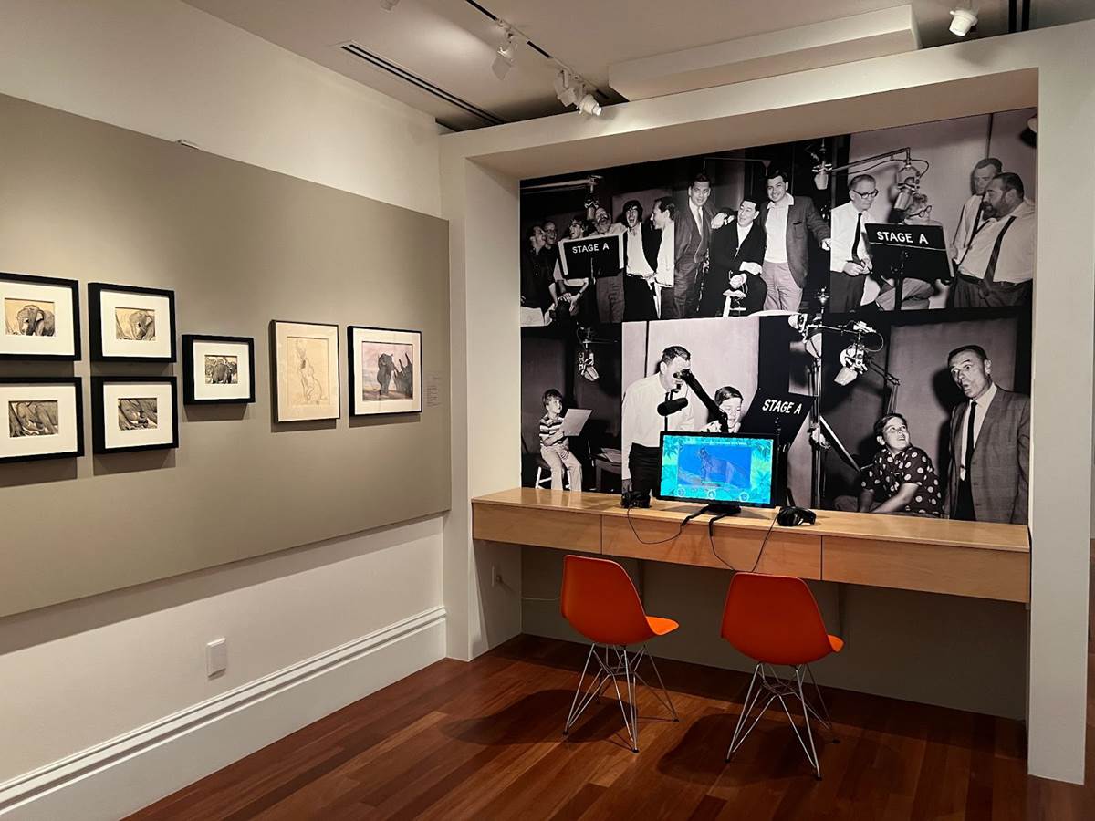 As visitors explore the galleries, there are several interactive elements to try out. On the theme of Kaa, kids can interact with the snake and feel what it’s like to be hypnotized like Mowgli. Another special guest for the grand opening was Bruce Reitherman, who voiced Mowgli and is also the son of director Woolie Reitherman. He got misty eyed talking about how special the experience of working with his dad was. Rare photos of Bruce’s live-action reference footage for Mowgli are on display alongside animation sketches based on his movements.
