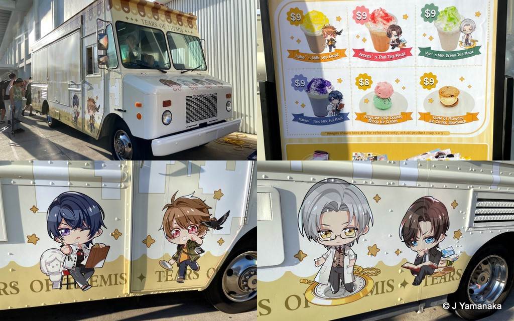 Even the food was appropriately themed, as the Paradise Cookies & Ice Cream truck took on the graphics of the mobile game Tears of Themis and offered magnets, postcards, and in-game loot to accompany the sweet treats.