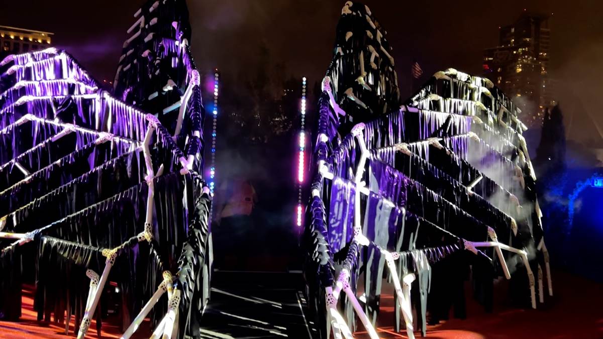 In a clearing, guests could walk up a ramp into a set of skeletal wings with light and smoke effects.