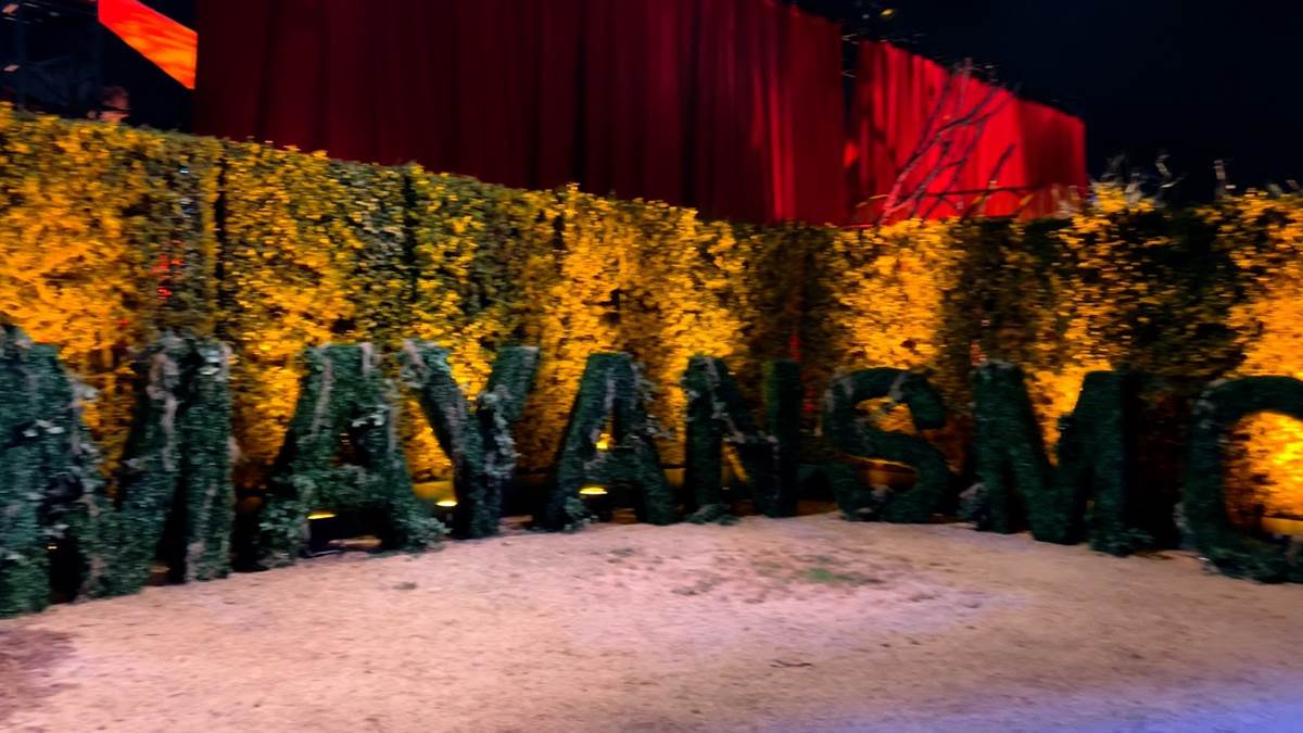 Segueing away from American Horror Stories, a motorcycle covered in vines led into topiaries spelling out Mayans M.C. in a clearing that led into another FX series.