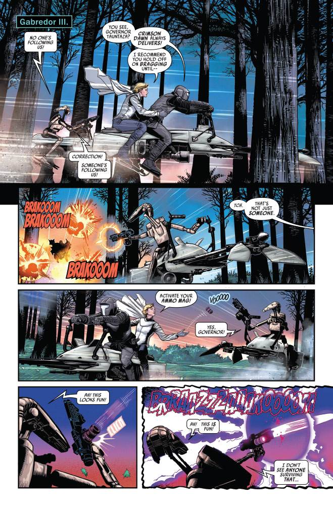 In issue #25 of the third volume of Star Wars: Darth Vader from Marvel Comics (released last Wednesday), the Dark Lord of the Sith previously known as Jedi Knight Anakin Skywalker finds himself in the midst of a conflict between a community of ex-slaves from Tatooine and a rogue Imperial governor under the thumb of the shrewd criminal organization Crimson Dawn.