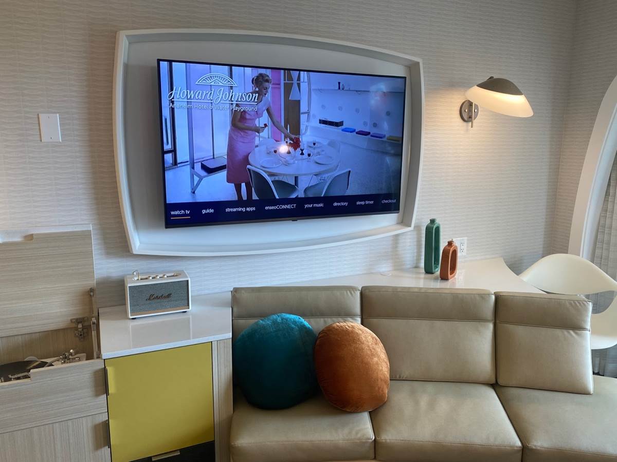 The Howard Johnson Anaheim Hotel, which is located right across the street from Disneyland, has long been a favorite of park-goers for its comfort and convenience. This was bolstered even more so by a recent remodel that emphasized the hotel’s mid-century design roots. Today, things went to the next level with the official opening of the House of the Retro Future Suite.
