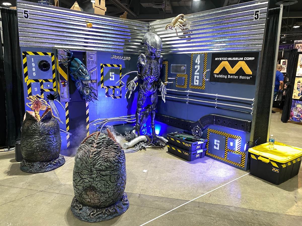 The main exhibit hall floor of Midsummer Scream was decked out in spectacularly supernatural decorations promoting other local Halloween experiences like the Los Angeles Haunted Hayride, Shaqtoberfest, and Reign of Terror. I also saw a giant inflatable Stay-Puft Marshmallow Man from Ghostbusters and a cool Alien-themed photo op location presented by the Mystic Museum.