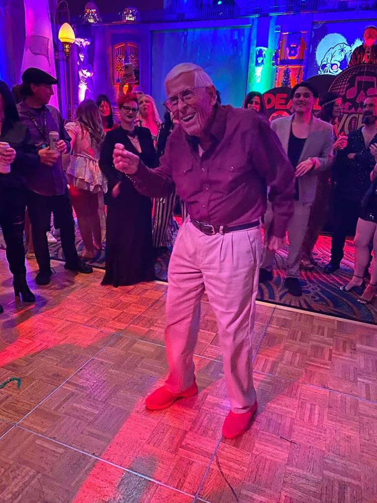 On Saturday evening, Midsummer Scream threw its big after-hours “Deadly Disco" party, which featured a live DJ, fun games like ping-pong and cornhole, and even nonagenarian Disney Legend Bob Gurr boogieing down on the dance floor. A video I posted of Gurr dancing on Twitter has caused quite the buzz in the Disney theme park communities: