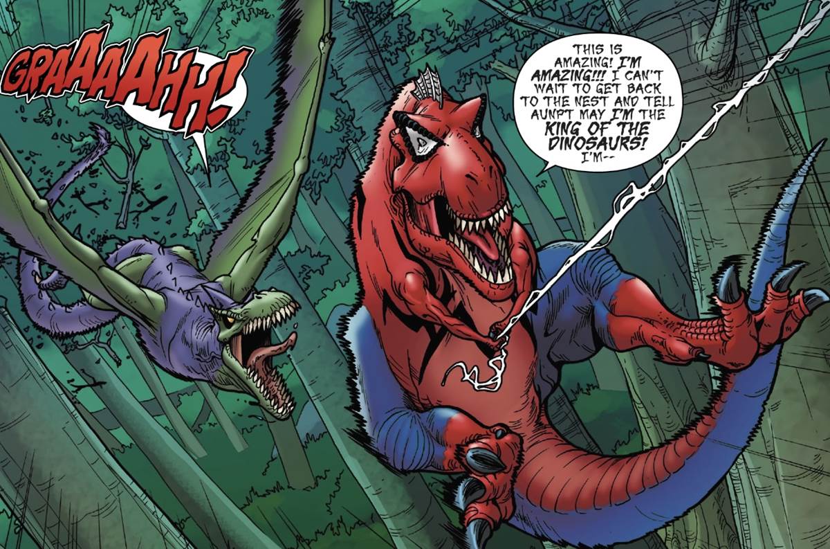There is a fair amount of comedy spread throughout the whole comic and a lot of it will get some good laughs. There’s the simple gags, like the slew of dinosaur puns we get in the Pter Ptarker story, as well as more tradition Spidey jokes, like some wall-crawling banter from Arana.