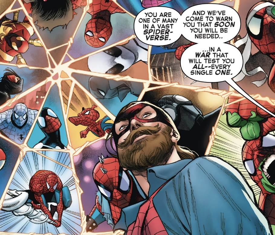 “Edge of Spider-Verse #1" kicks off a brand new Spidey story unlike any you’ve ever seen before. And I can say that confidently, because there’s never been a Spider-Rex before. When Madame Web shows up, you know things are about to get crazy and all kinds of Spider-heroes are about to go for a wild ride.