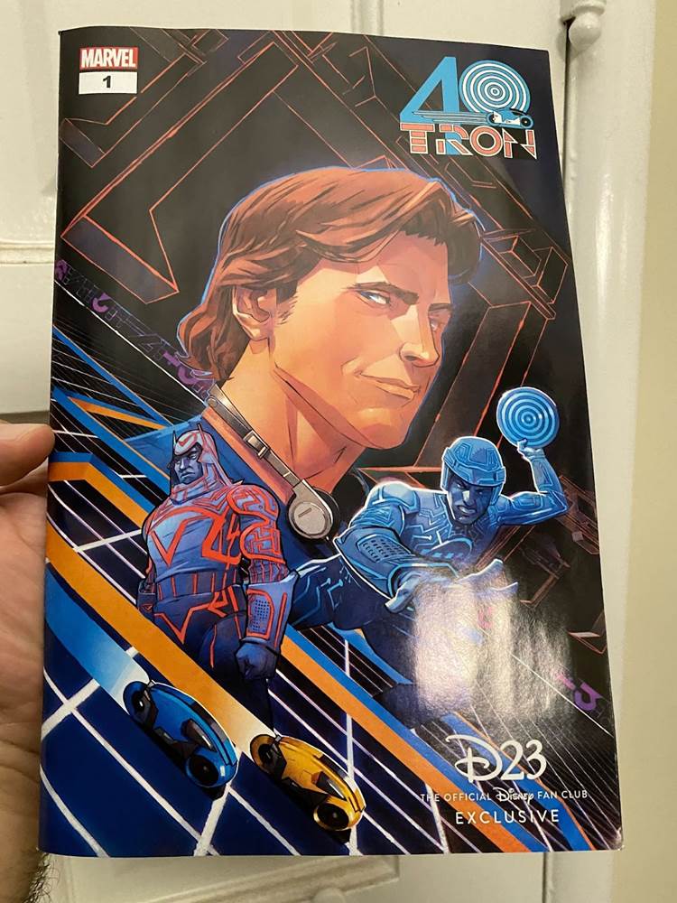 On hand for “TRON: A Night On the Grid" at El Capitan Theatre were producer Donald Kushner (The Brave Little Toaster), computer image choreographer Jerry Rees (Space Jam), effects animator John Van Vliet (X-Men), and author of The Art of TRON Mike Bonifer (The Disney Family Album). Moderator Justin Arthur of D23 - The Official Disney Fan Club guided the panel through a discussion of the making of TRON and how the film was initially received upon release. In the El Capitan’s main lobby, a display case held props and other items from the production of both TRON and its sequel TRON: Legacy, such as a Tank Warrior helmet, a Gaming Program identity disc, a Lightcycle baton, the keys to Flynn’s Arcade, the helmet worn by Jeff Bridges as Clu, and the sound clapboard from the original film. At the end of the movie, attendees of “A Night On the Grid" were thrilled to receive a complimentary Marvel comic book celebrating the 40th anniversary of TRON. But the highlight of the night was definitely the opportunity to see TRON on the big screen once again, via El Capitan Theatre’s state-of-the-art presentation.
