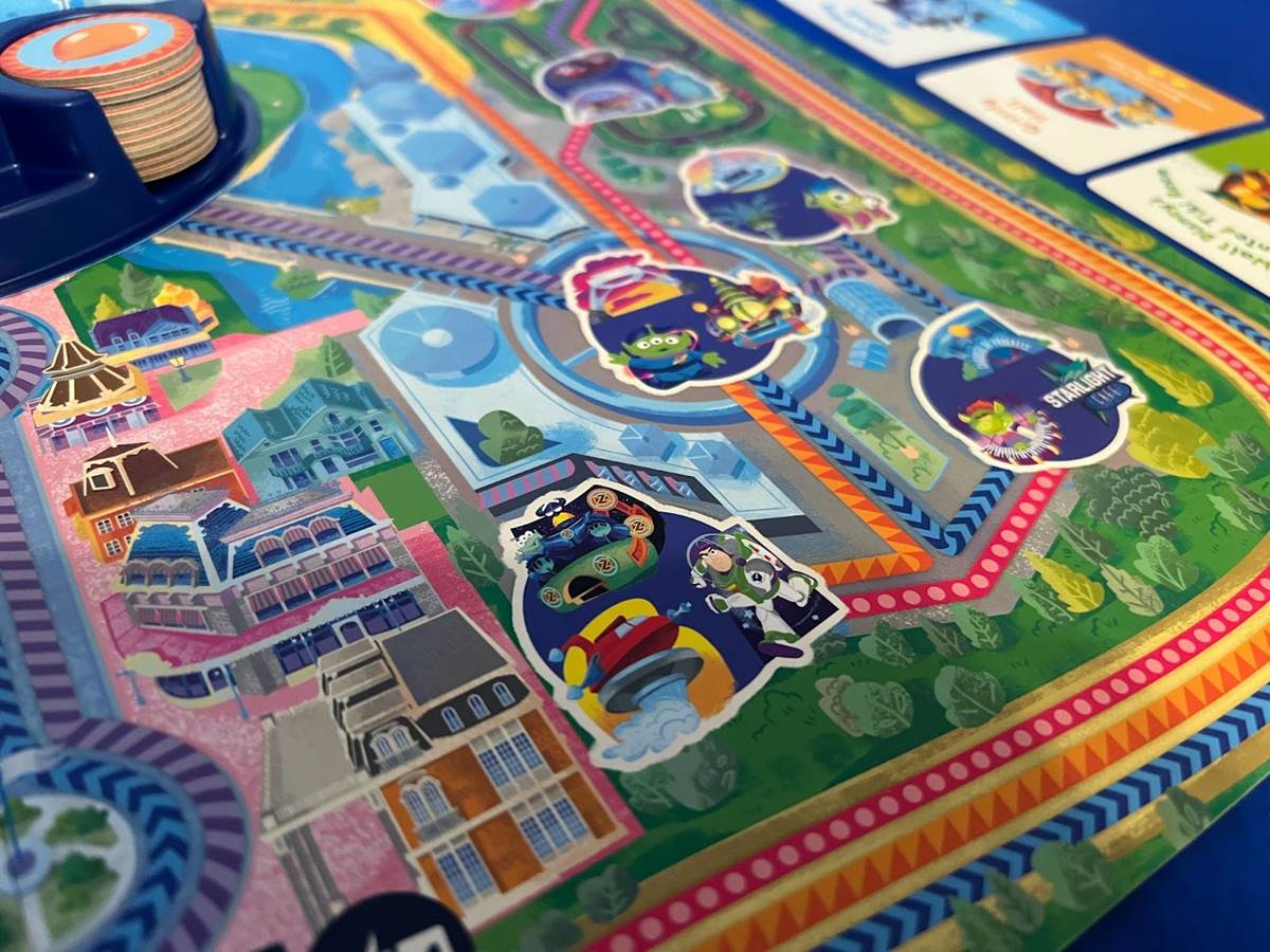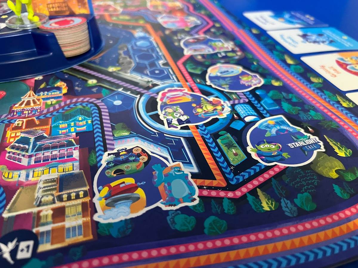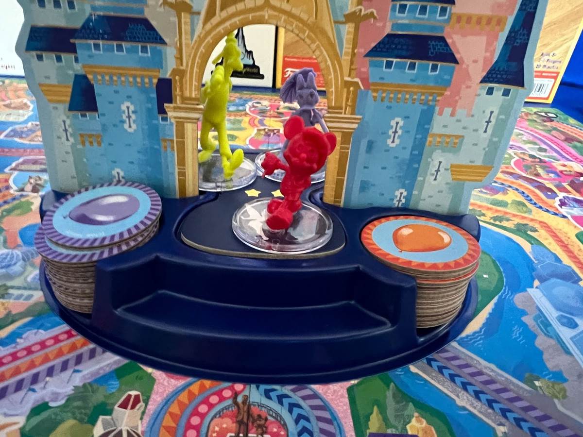 Like the park itself, the board game looks a little different at night. Tinker Bell is always fluttering above the castle on a path determined by how many players there are. Once she reaches the top spire, it’s time to flip the game to nighttime. This is as simple as flipping the board over and setting the castle’s base back down.