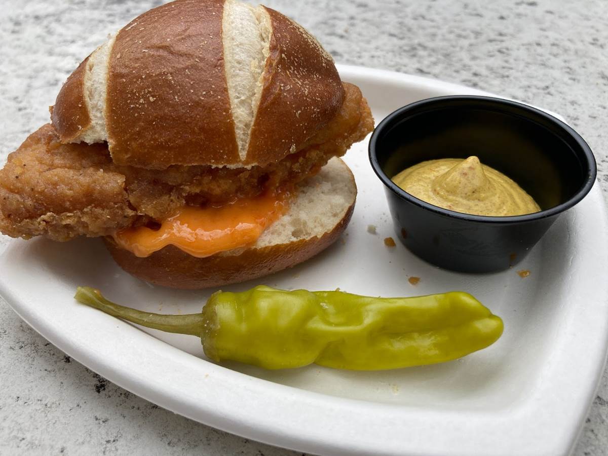 Some of the other highlights among the new offerings include the Walking Taco, the 2-Way Beer Drunken Ribs and the best of this group, the Crispy Chicken Pretzel Slider.