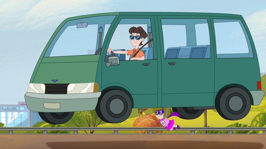 The show then rolls its catchy theme song, showing how special Gretel and Hamster are now with Kevin just driving along in the family minivan. After, we see more of the team dynamic the pair has taken on during a news report with a cat trapped in a well. Gretel and Hamster are on scene with Kevin nearby in the van taking control of the communications behind the situation. After saving the kitten, Gretel does a brief meet and greet in her hero form, where her friend Bailey says that she also has a friend named Gretel who has a pet hamster, but Kevin also has told Gretel not to tell Bailey. In fact, the only person who does know who their identity is is their cousin, Fred.